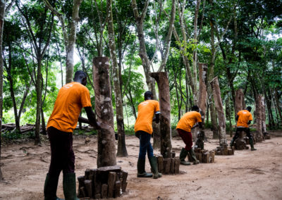 Nos usines à caoutchouc sont alimentées par des énergies renouvelables ou vertes. Ainsi, nos séchoirs à caoutchouc peuvent notamment être alimentés par du bois d’hévéas en fin de cycle de vie et l’électricité peut provenir d’installations solaires, éoliennes ou hydroélectriques.